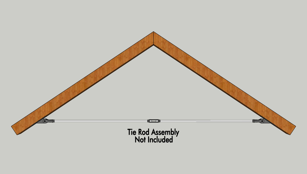Face-mounted tie rod brackets are the easiest and most economical way to add a decorative tie rod assembly to your ceiling. Each bracket is installed with two vertically-aligned 1/4" wood screws allowing the bracket to be screwed to a traditional two-by rafter. Because these brackets do not have saddles that wrap around your rafter, they can be applied to a dry-walled ceiling after construction. Find the total span by measuring where you want your tie rod to go. Then buy two brackets, and one of our tie-rod assemblies that fits your total span.