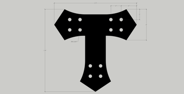 The TE6 is useful for connecting king and queen posts to truss bottom tie beams. 6" wide plates look good on timbers ranging in width from 6" to 12". 3/16" steel is a good choice for purely decorative plates. 1/4" is better for applications that need structural support.